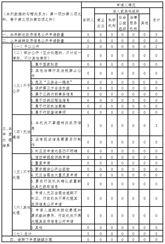 三、收到和处理政府信息公开申请情况