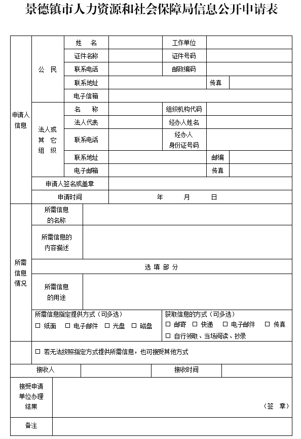 附件:景德镇市人力资源和社会保障局信息公开申请表