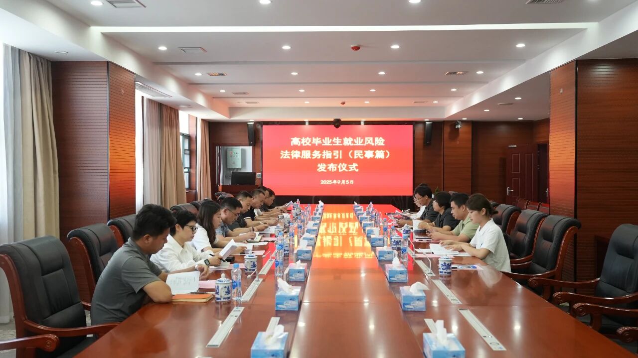 2025年9月5日,景德镇中院举行《高校毕业生就业风险法律服务指引(民事篇)》(以下简称《指引》)发布仪式。景德镇中院副院长黄奕华出席活动并讲话,市人社局党组成员、副局长陈优,就业创业服务中心副主任曹志轶、5所院校的师生代表、2名企业代表参加活动,共同见证《指引》正式发布。
