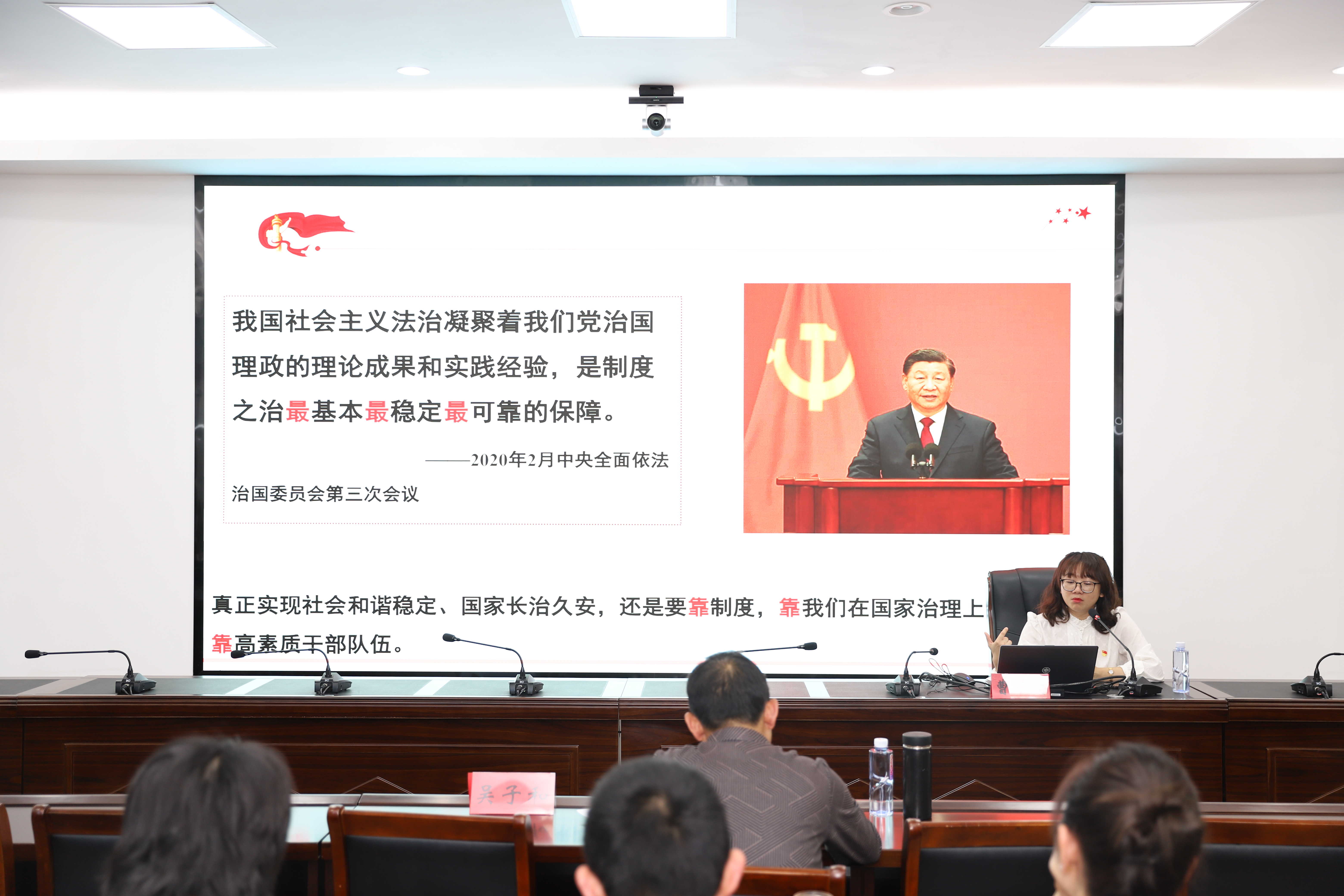 讲座邀请市委党校图书网络教育中心主任曹婧授课。讲座围绕习近平总书记关于全面依法治国的重要论述,生动展现了习近平法治思想的形成发展过程,系统阐释了习近平法治思想的科学体系和丰富内涵。
