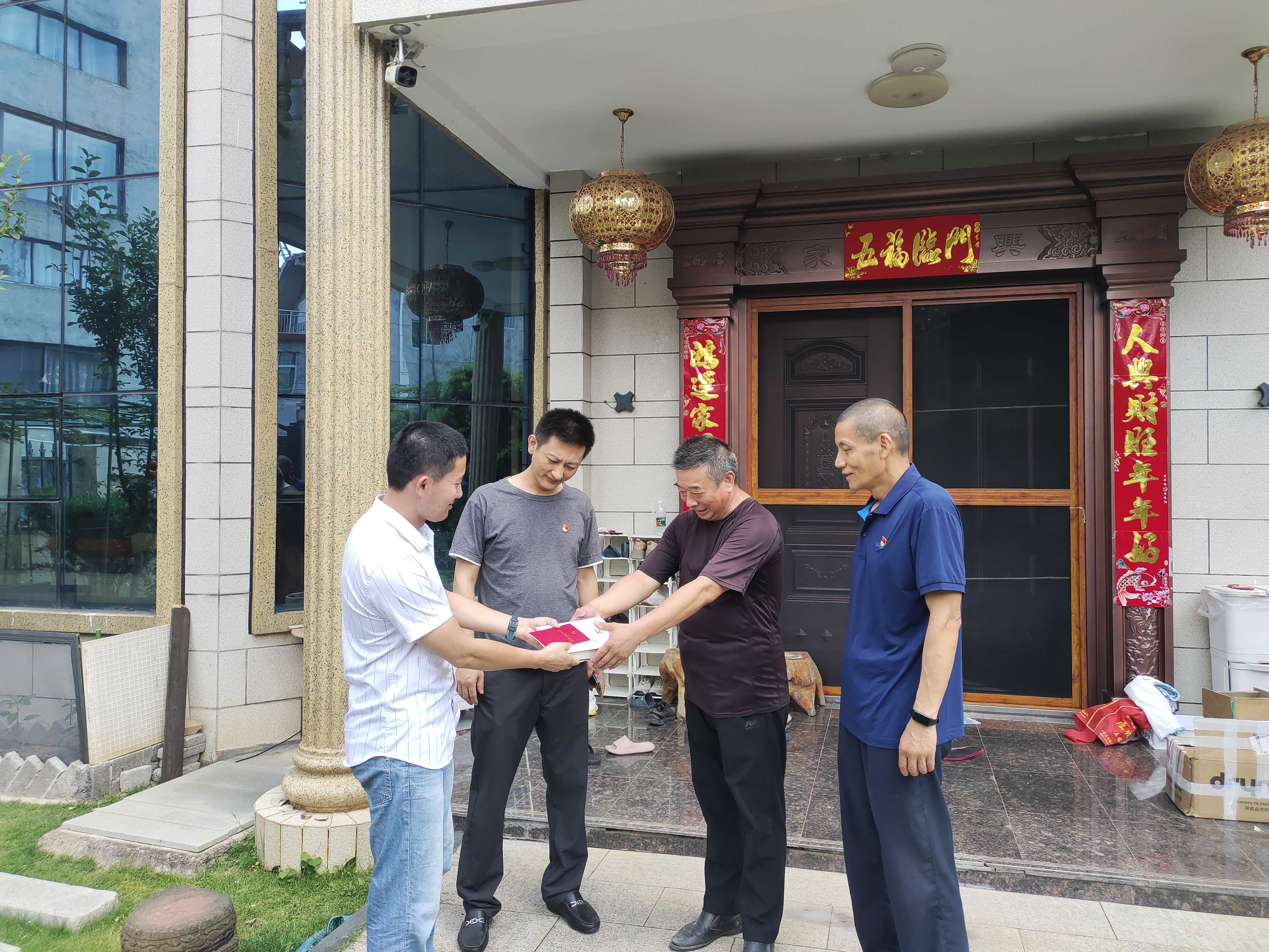 “欢迎欢迎,感谢组织为我这个退休党员送学上门......”“这是最近开展党纪学习教育的要求,你作为老党员一定要多学、多看,在退休后,不忘党员身份,继续为当地建设发挥余热......”5月24日,市就业中心党总支和机关支部委员一行来到市就业中心退休党员江玮家中,将《中国共产党章程》《中国共产党纪律处分条例》(新修订版)和《习近平新时代中国特色社会主义思想专题摘编》等书籍送到其手中,为其送去了“精神食粮”,认真倾听老党员对就业工作的意见和建议,了解其身体健康情况和家庭生活情况。江玮同志介绍说,他退休后在郊区定居,平时生活就是养鸡种菜,家庭和谐幸福,感谢组织上的关心。