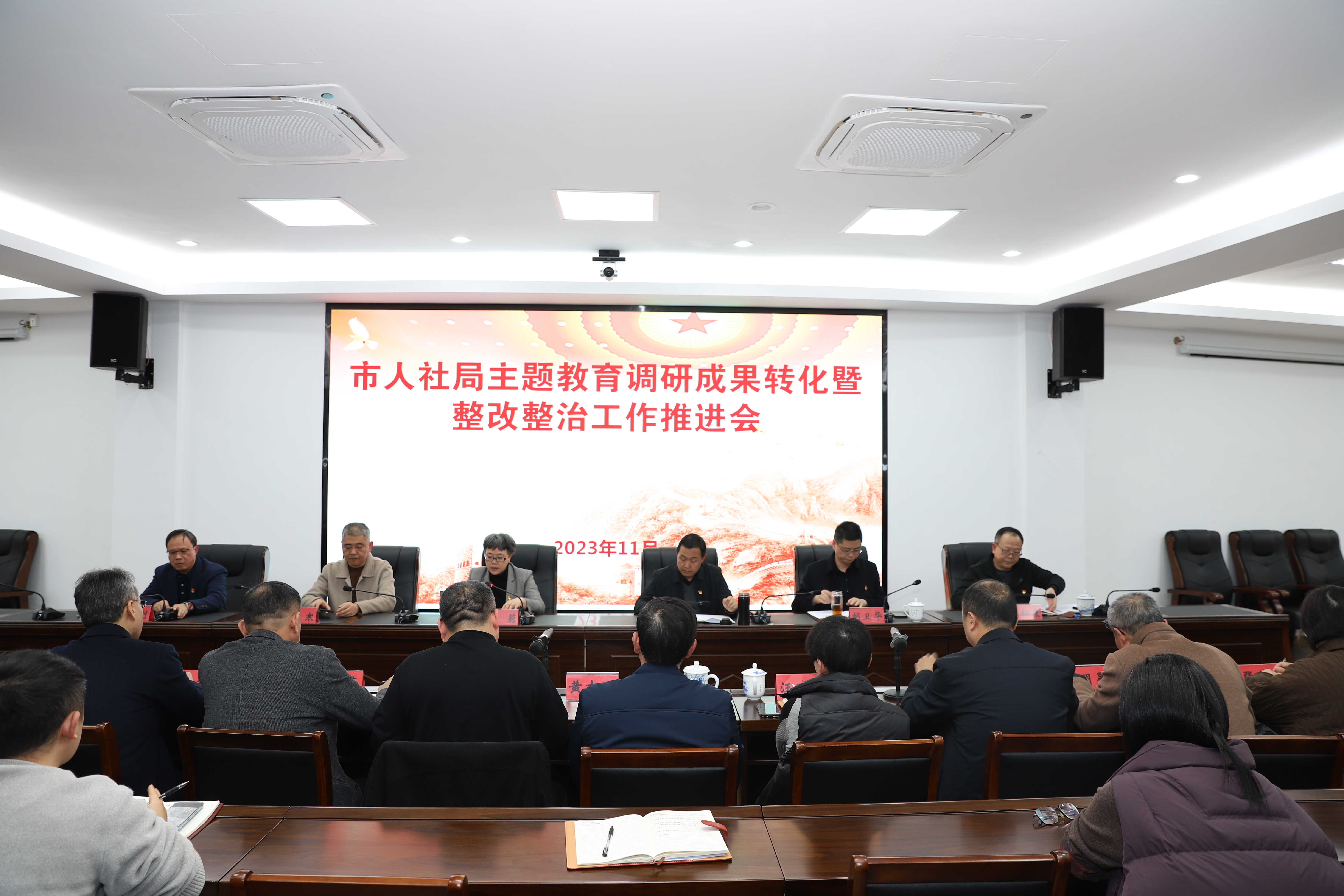 11月29日,市人社局召开主题教育调研成果转化暨整改整治工作推进会,深入学习贯彻习近平总书记关于主题教育的重要讲话和重要指示批示精神,认真落实市委主题教育领导小组会议要求,总结局主题教育调查研究和整改整治工作进展情况,交流工作体会,分析存在问题,研究部署下步工作,确保主题教育取得实实在在的成效。局党组书记、局主题教育领导小组组长罗莉同志主持会议并讲话,局系统县级领导、机关中层干部、局属党组织书记参加会议。